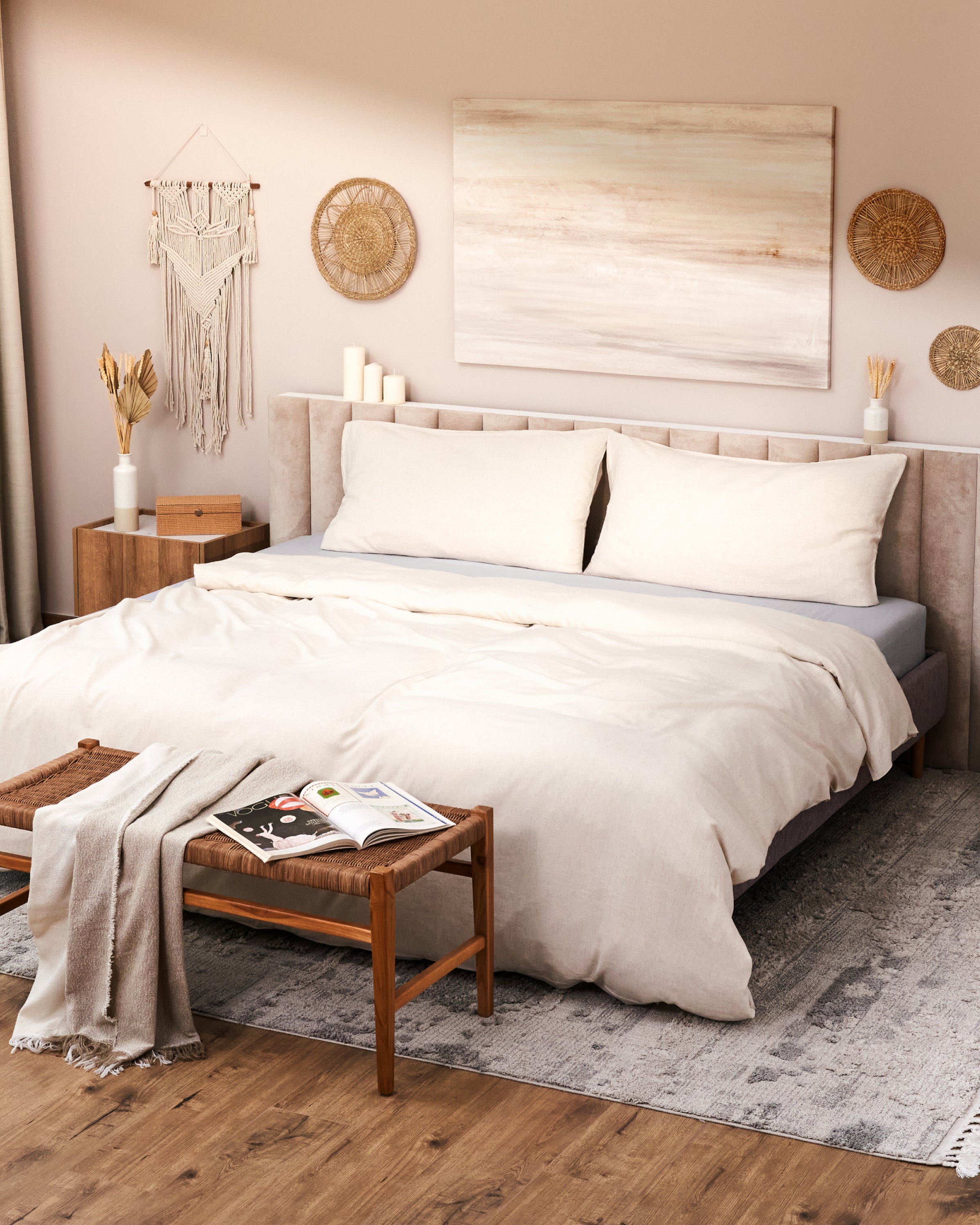 Year Round Comfort - Natural linen duvet cover set blended with bamboo viscose for breathable softness that regulates temperature, keeping you cool in summer and cozy in winter.